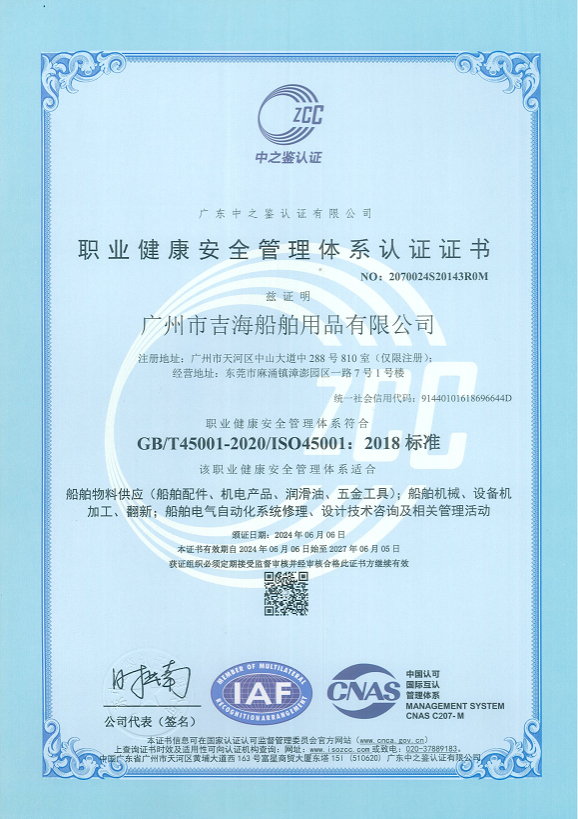 广州市吉海船舶用品有限公司创建于1997年1月,历经20多年的积累和创新,是国内一流的船舶海工配套服务的企业。公司总部设立在世界大港——广州新沙港新沙工业园,占地面积20多亩地,是集仓储、生产、办公于一体,为船舶、海工、海洋钻井平台、FPSO、邮轮、港口建设单位、石油化工行业提供多元化服务的企业。